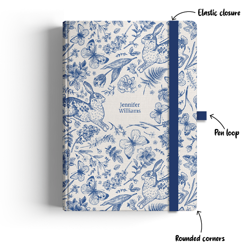 Our A5 hard cover bound week to view diaries can be customised with your own name. This diary has a slimmer feel with a classic and timeless design layout.