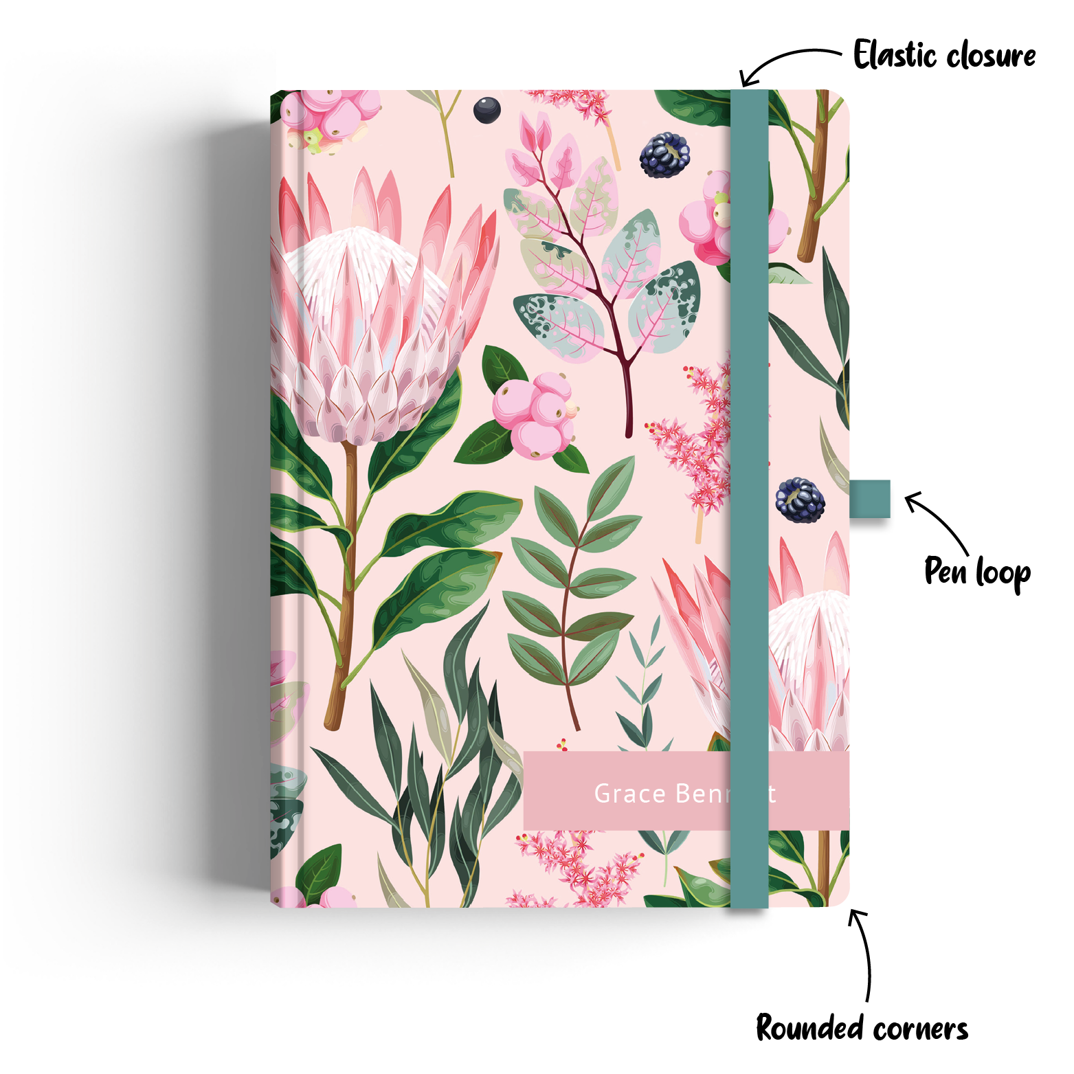 Our hard cover bound journals can be customised with a name. Start the project and click into the name field when it opens to enter a name then add it to your basket and complete the checkout.