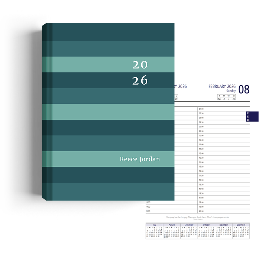 Our page-a-day diaries are available in A5 (204 x 144mm), Management (240 x 170mm) and A4 (276 x 203mm) sizes.