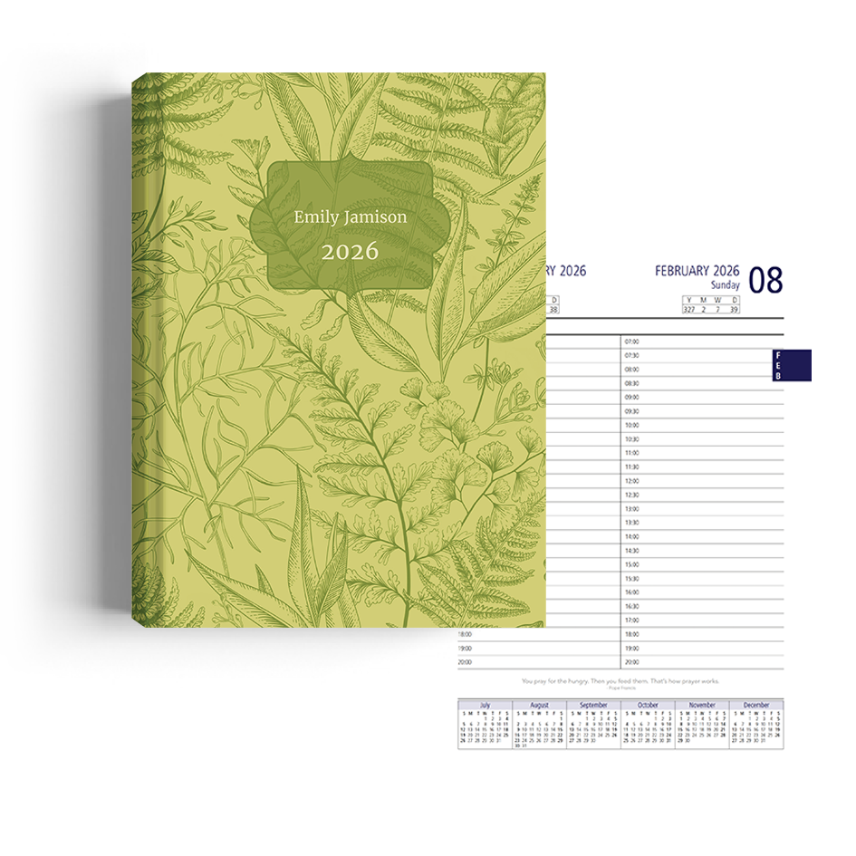 Our page-a-day diaries are available in A5 (204 x 144mm), Management (240 x 170mm) and A4 (276 x 203mm) sizes.