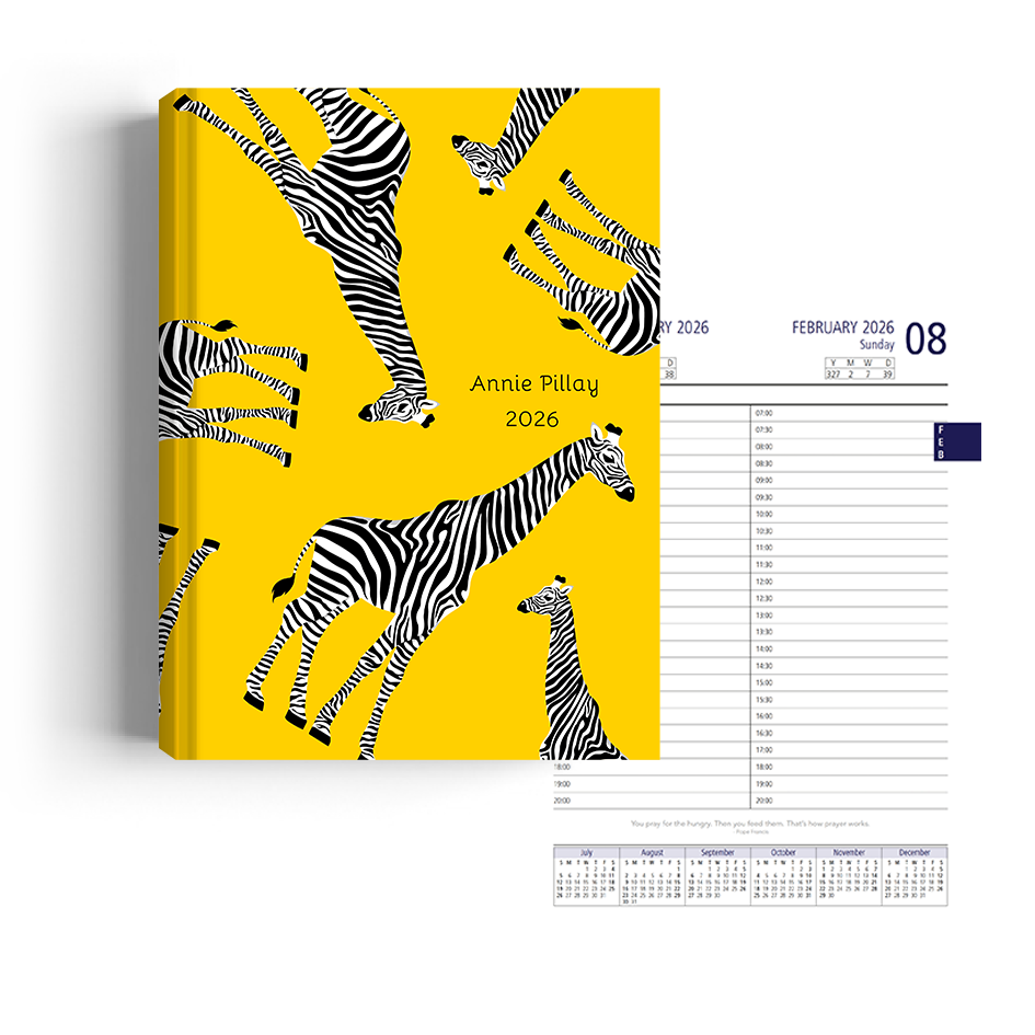 Our page-a-day diaries are available in A5 (204 x 144mm), Management (240 x 170mm) and A4 (276 x 203mm) sizes.