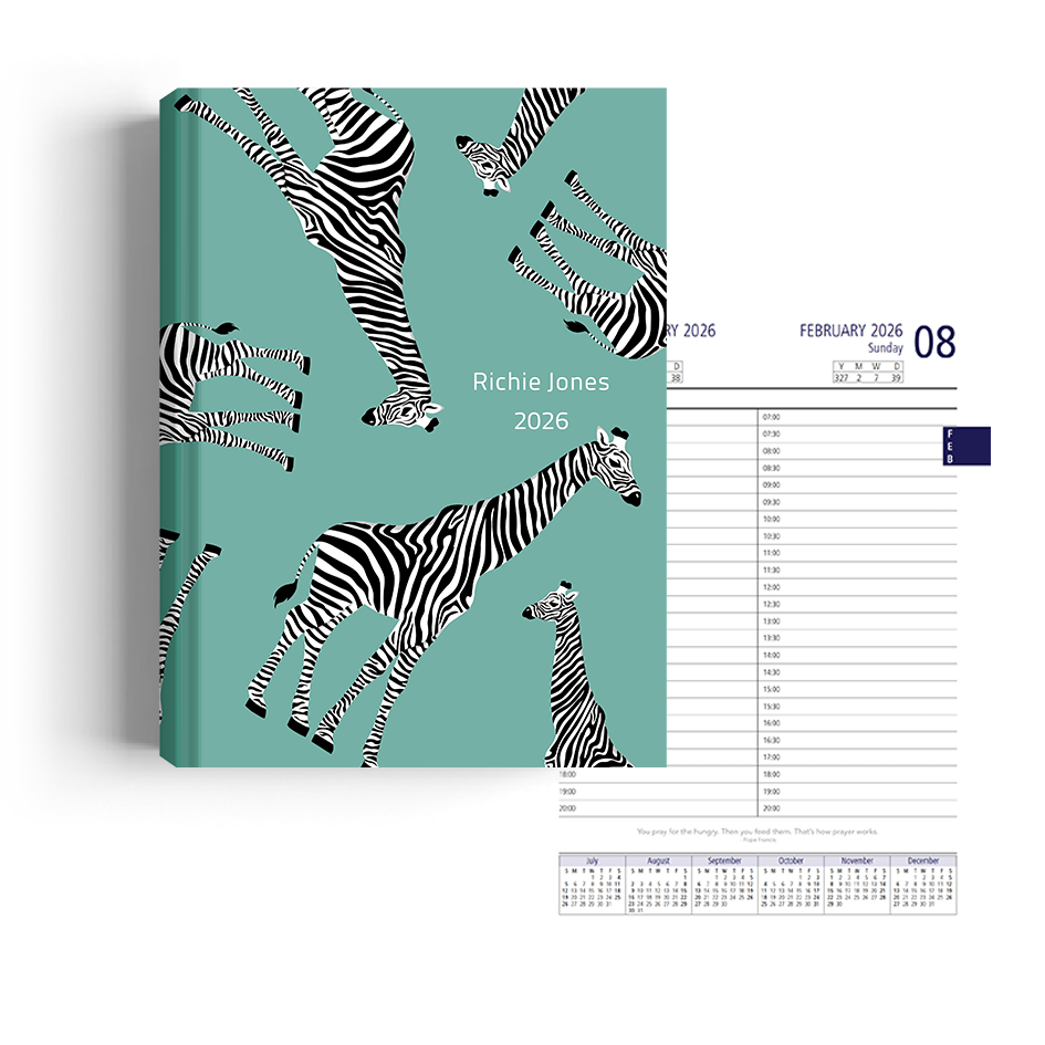 Our page-a-day diaries are available in A5 (204 x 144mm), Management (240 x 170mm) and A4 (276 x 203mm) sizes.