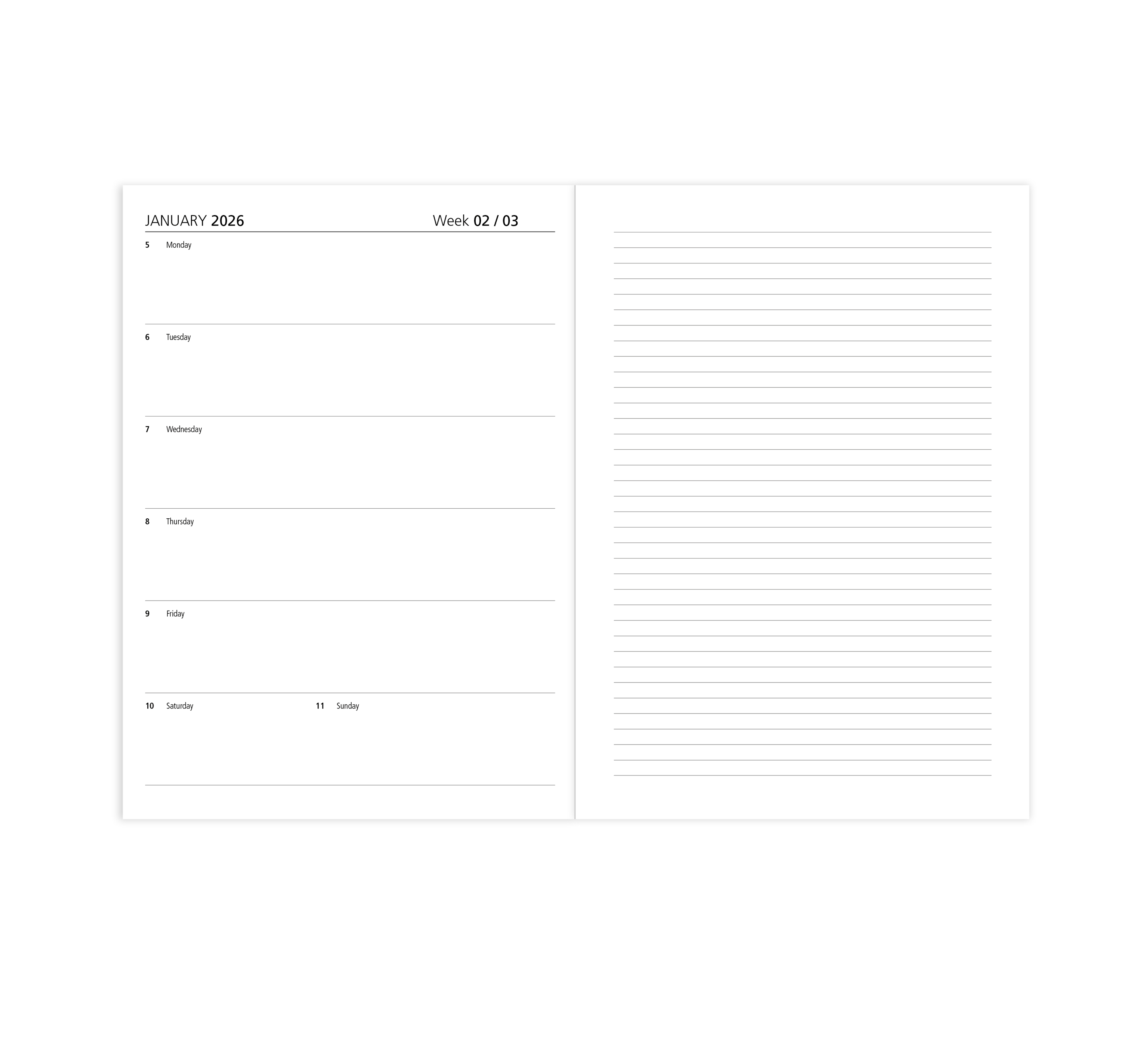 Finish192 Pages, Full Week Left Page & Ruled Lines Right Page