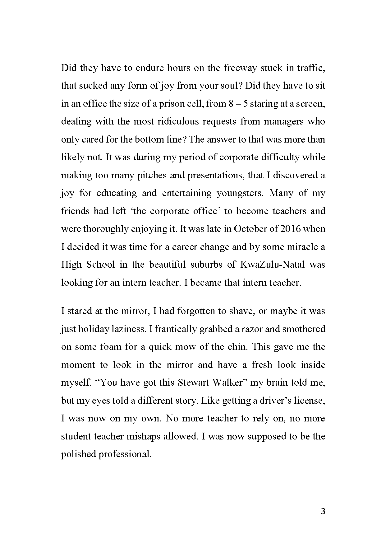 Educated Insanity is based on Mr Stewart Walker's first year of being a high school teacher at Kensington High in KwaZulu-Natal.