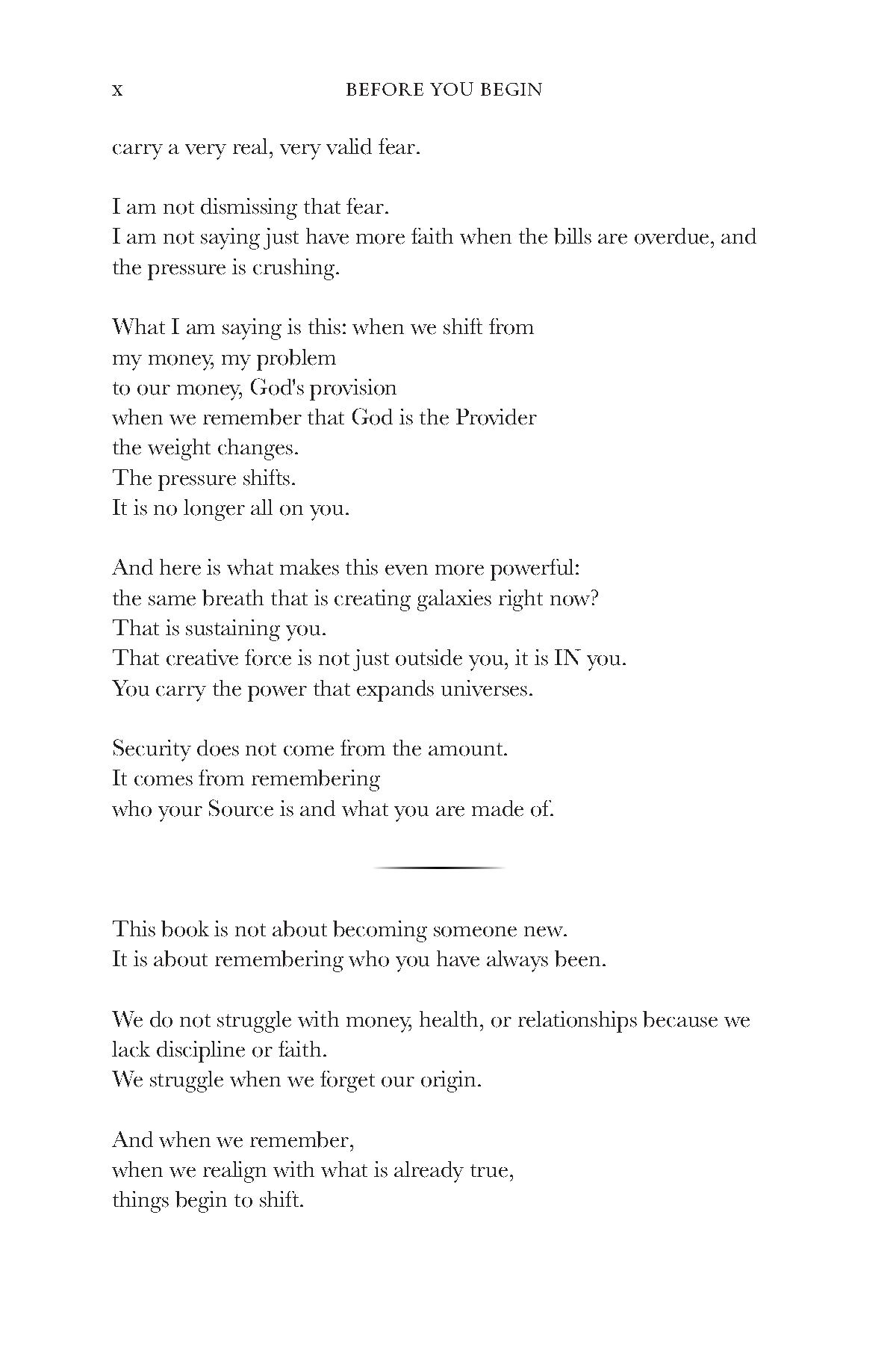 Over the course of 30 days, you’ll explore themes such as rest as wealth, heaven’s economy, sonship over striving, generosity without fear, and abundance as a natural overflow of union with God. Each entry is designed to slow you down, create space for listening, and help you retune to the frequency God has always been speaking over your life.