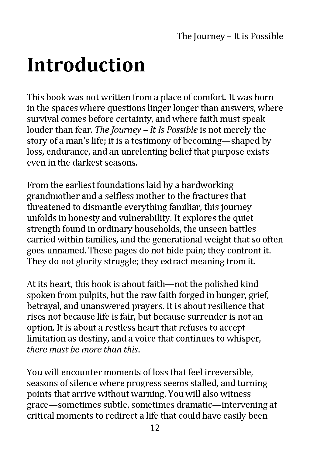 The Journey - It is Possible, is a raw and courageous account of faith tested by loss, betrayal, spiritual warfare, and resilience.