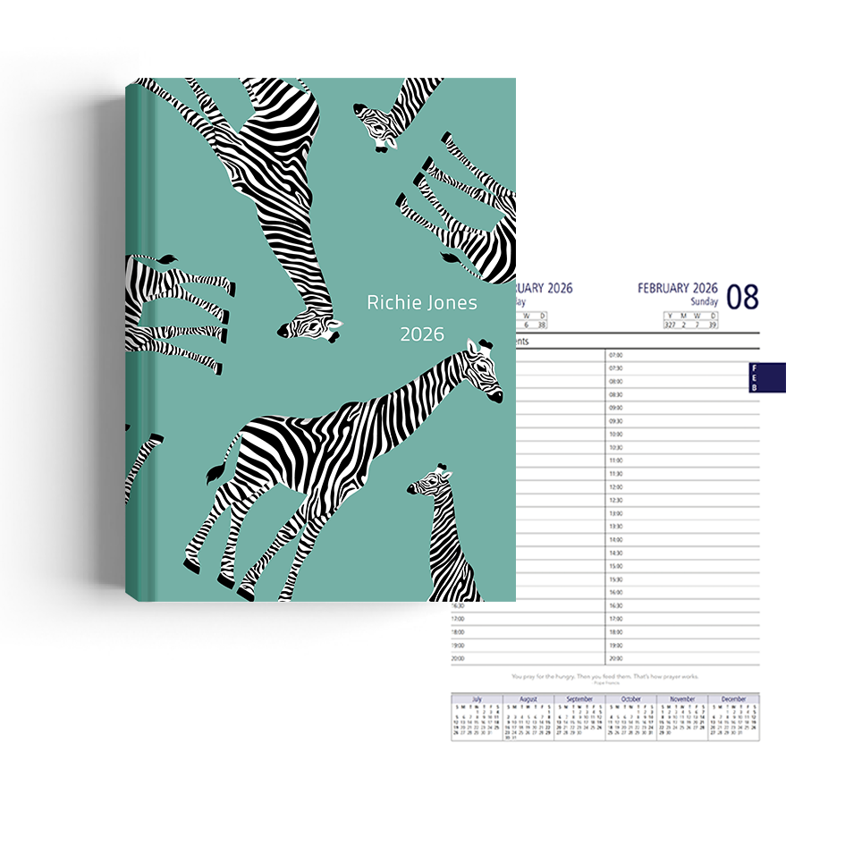 Our page-a-day diaries are available in A5 (204 x 144mm), Management (240 x 170mm) and A4 (276 x 203mm) sizes.