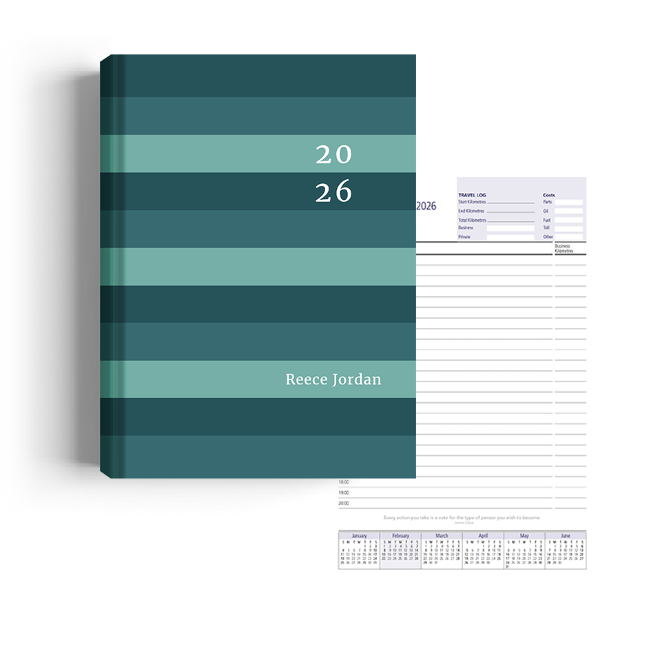 Our page-a-day diaries are available in A5 (204 x 144mm), Management (240 x 170mm) and A4 (276 x 203mm) sizes.