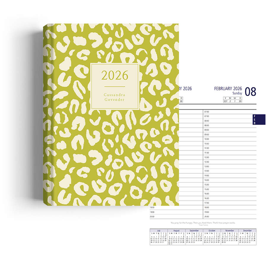 Our page-a-day diaries are available in A5 (204 x 144mm), Management (240 x 170mm) and A4 (276 x 203mm) sizes.
