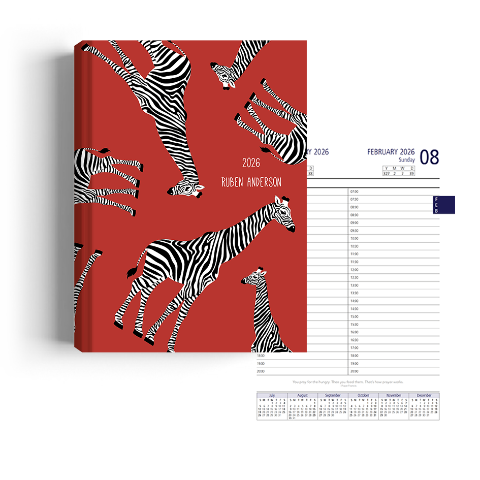 Our page-a-day diaries are available in A5 (204 x 144mm), Management (240 x 170mm) and A4 (276 x 203mm) sizes.