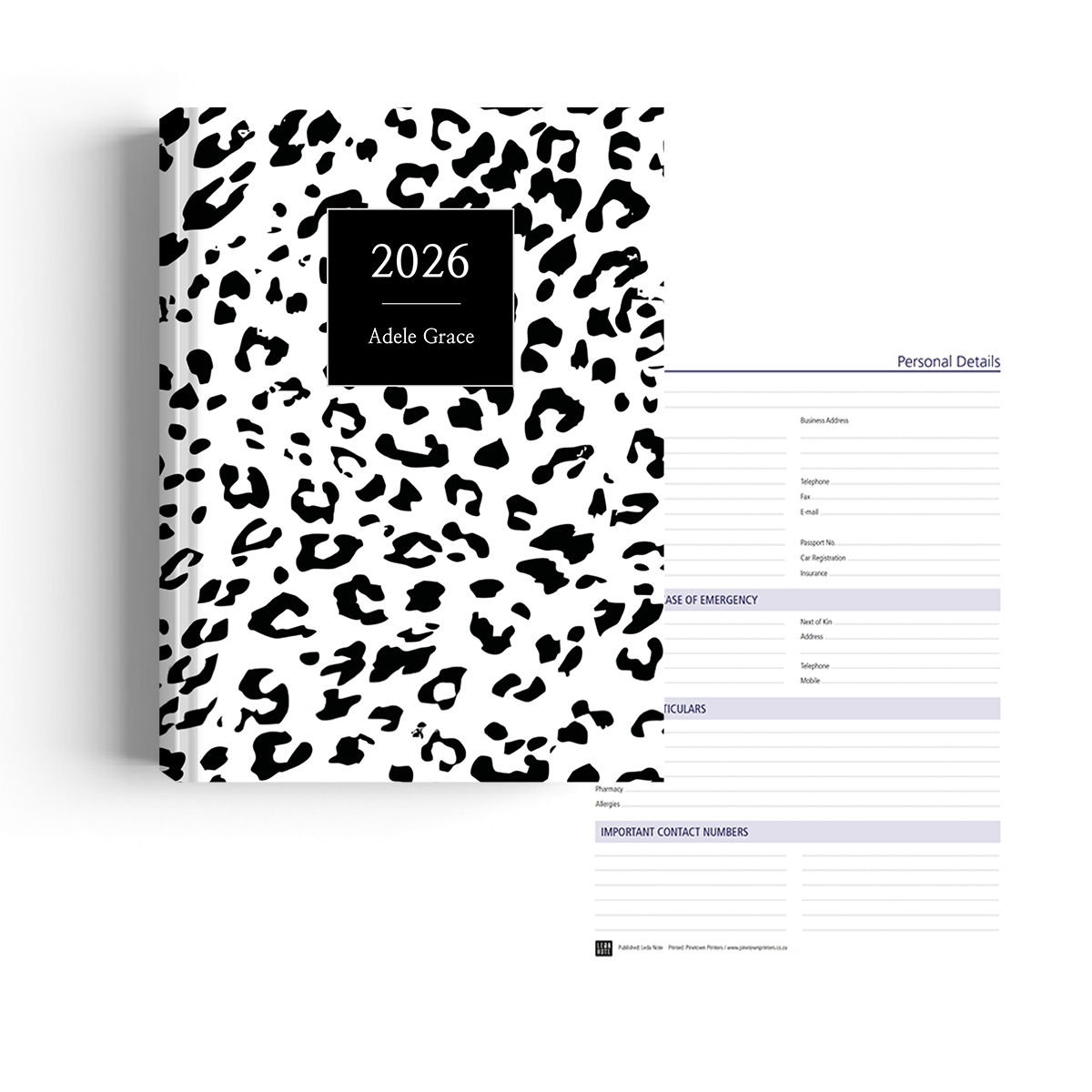 Cover: Printed personalised cover available in gloss or matt finish.