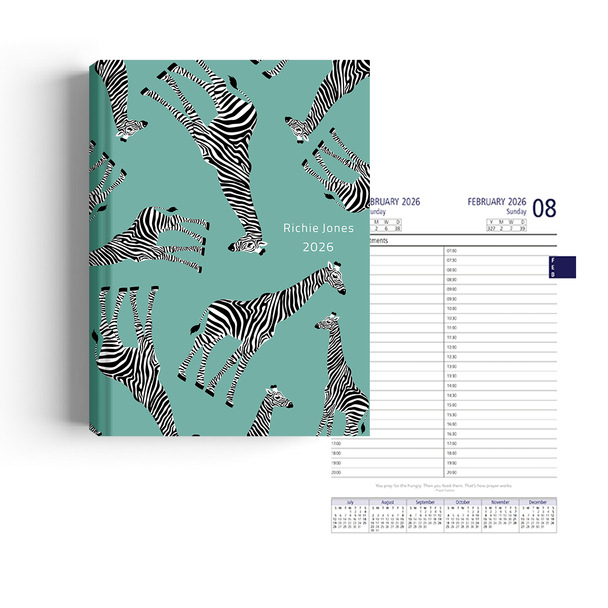 Our page-a-day diaries are available in A5 (204 x 144mm), Management (240 x 170mm) and A4 (276 x 203mm) sizes.
