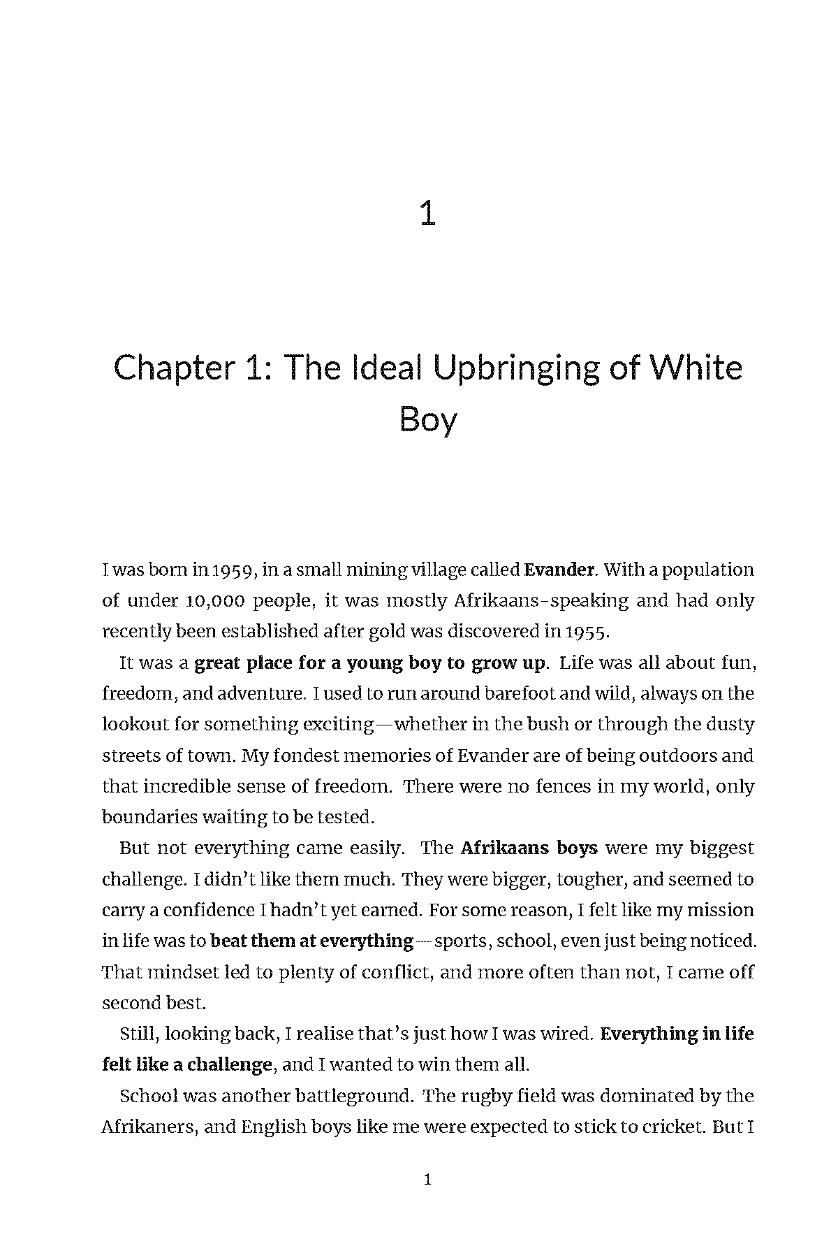 My name is Shane Gouldie and this is the story of a white boy. I was born in 1959, in a small village in South Africa called Evander. It was a place of dust, gold, coal, and contradictions - where the days were long, the rugby fields were sacred, and the colour of your skin decided far too much about your life.