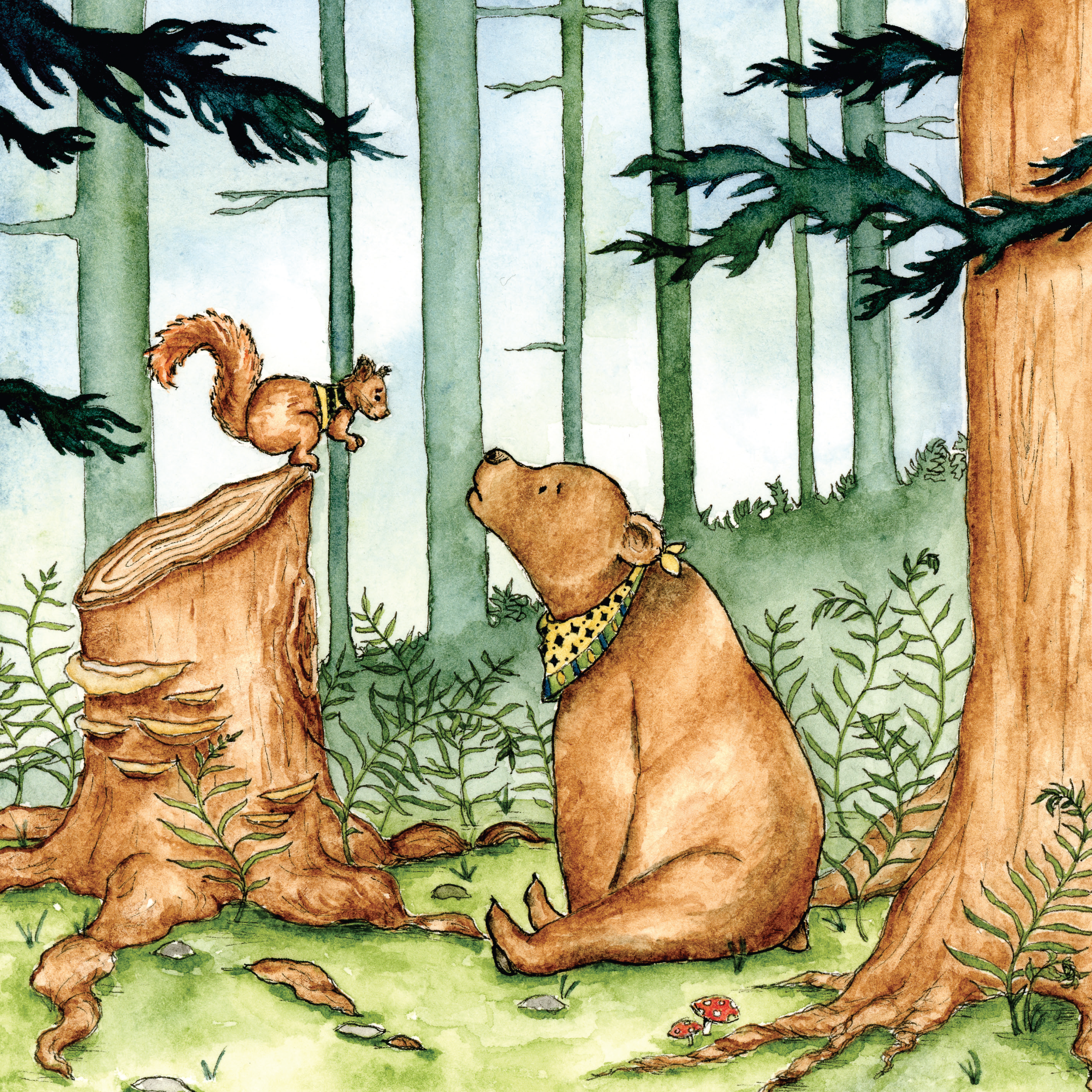 n Klein beertjie, wat aan verskriklike vrees ly, vind 'n omgee-vriend in 'n eekhoring - die eekhoring vra dan wyse Mej. Uil vir raad.