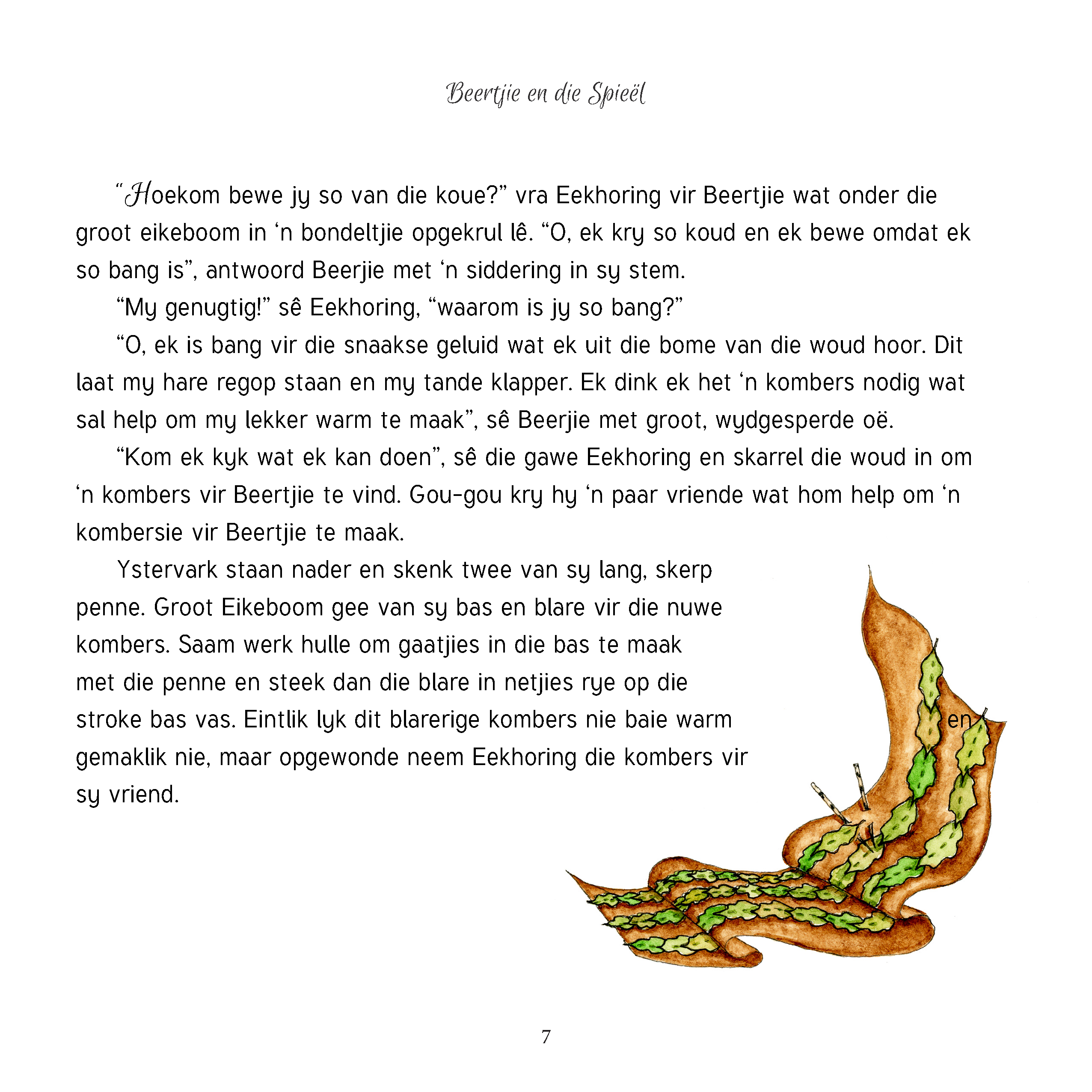 Klein Beer het die Spieël geneem en diep daarin gestaar. Hoe meer hy gekyk het, hoe breër het sy glimlag oor sy groot beerbek gesprei.