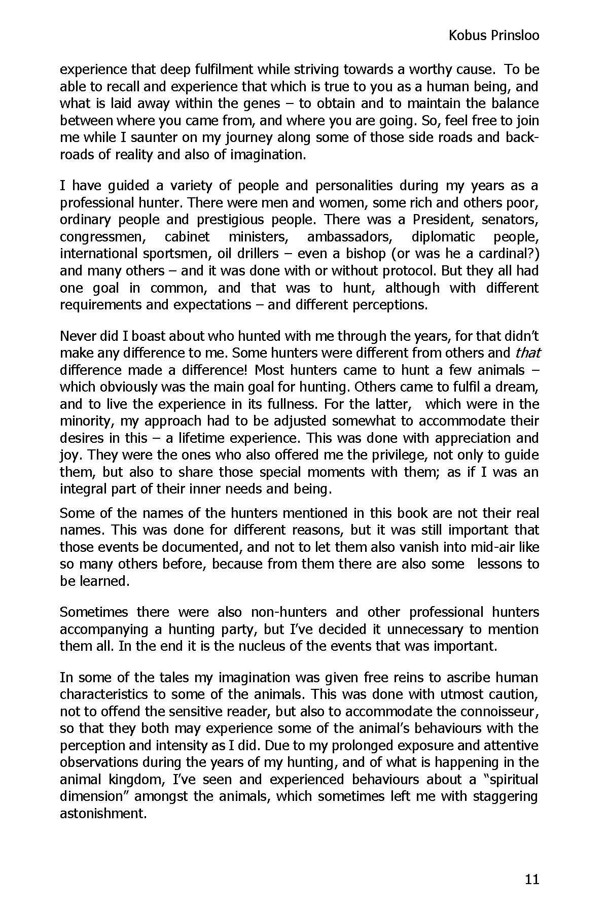 The book is an immensely instructive manual. Aspiring professional hunters can learn as much from it as on a hunting-school course. The author enriches every story with a wealth of detail about how he went about making the hunt successful.