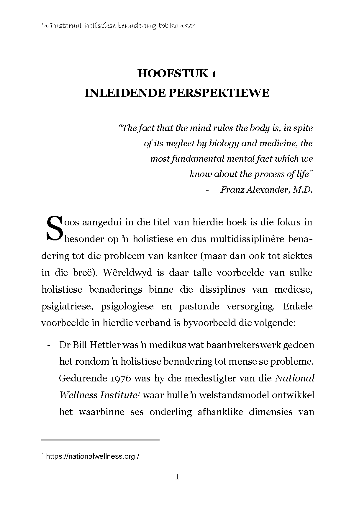 'n Pastoraal-Holistiese Besouing Van Kanker (Prof.Wentzel Coetzer)